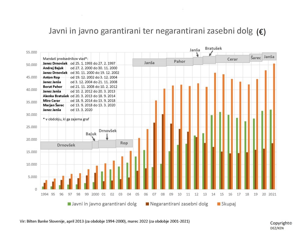 Zadolževanje Slovenije po predsednikih vlad, podatki so iz biltena Banke Slovenije.